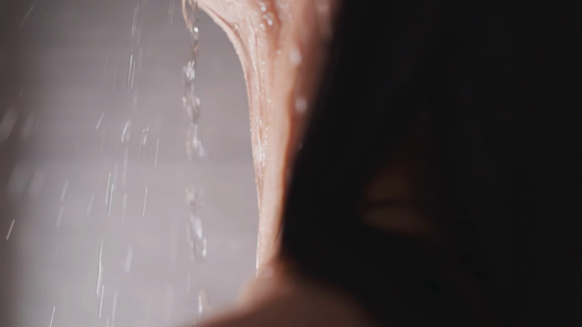 Woman Neck With Water Drops In Shower Unit Closeup Graceful Lady Relaxes Standing In Warm Sprays In Home Bathroom Hygienic Routine ForÂ
