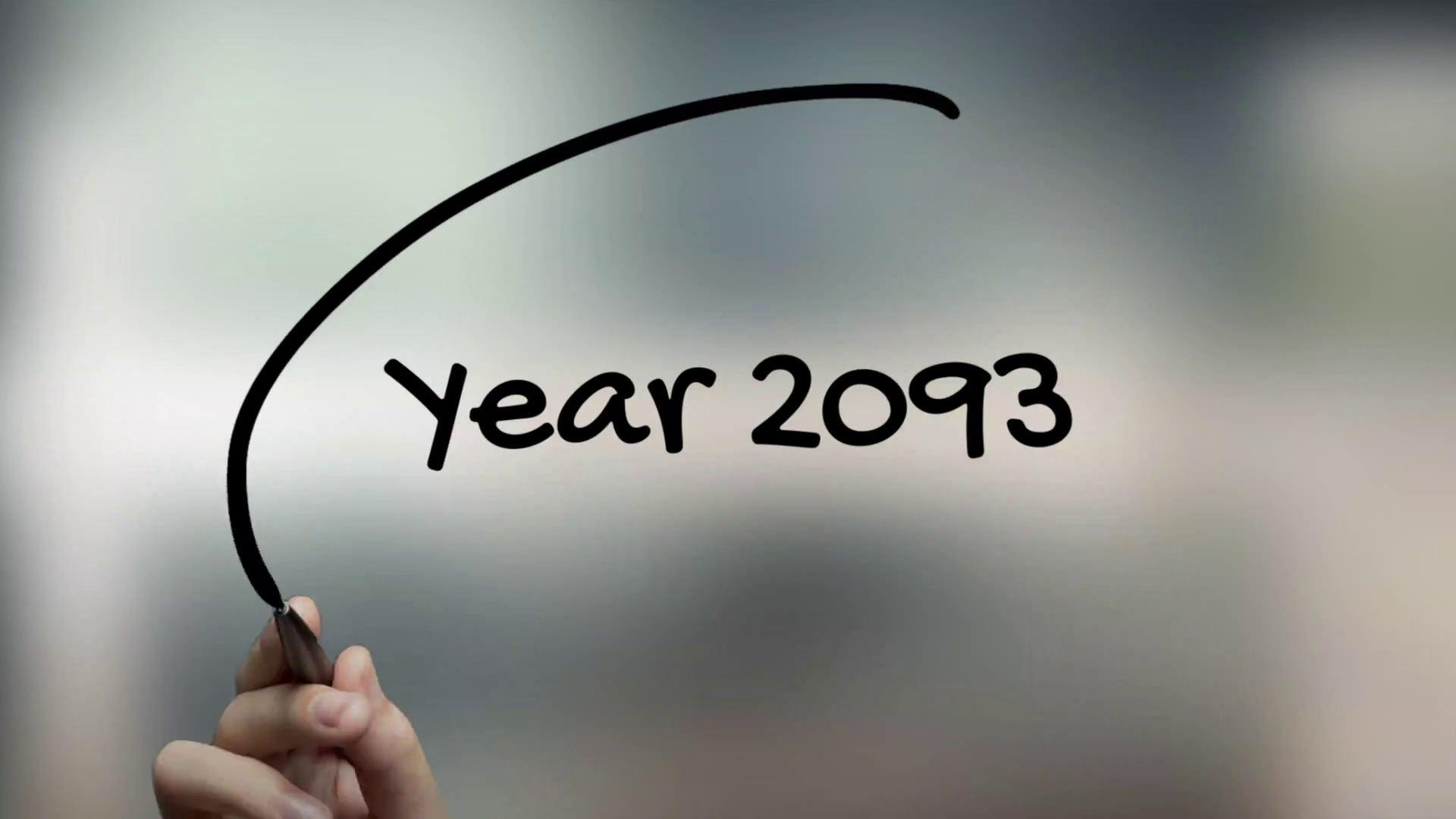 Year 2093 Handwriting With Black Marker On Glass SurfaceÂ