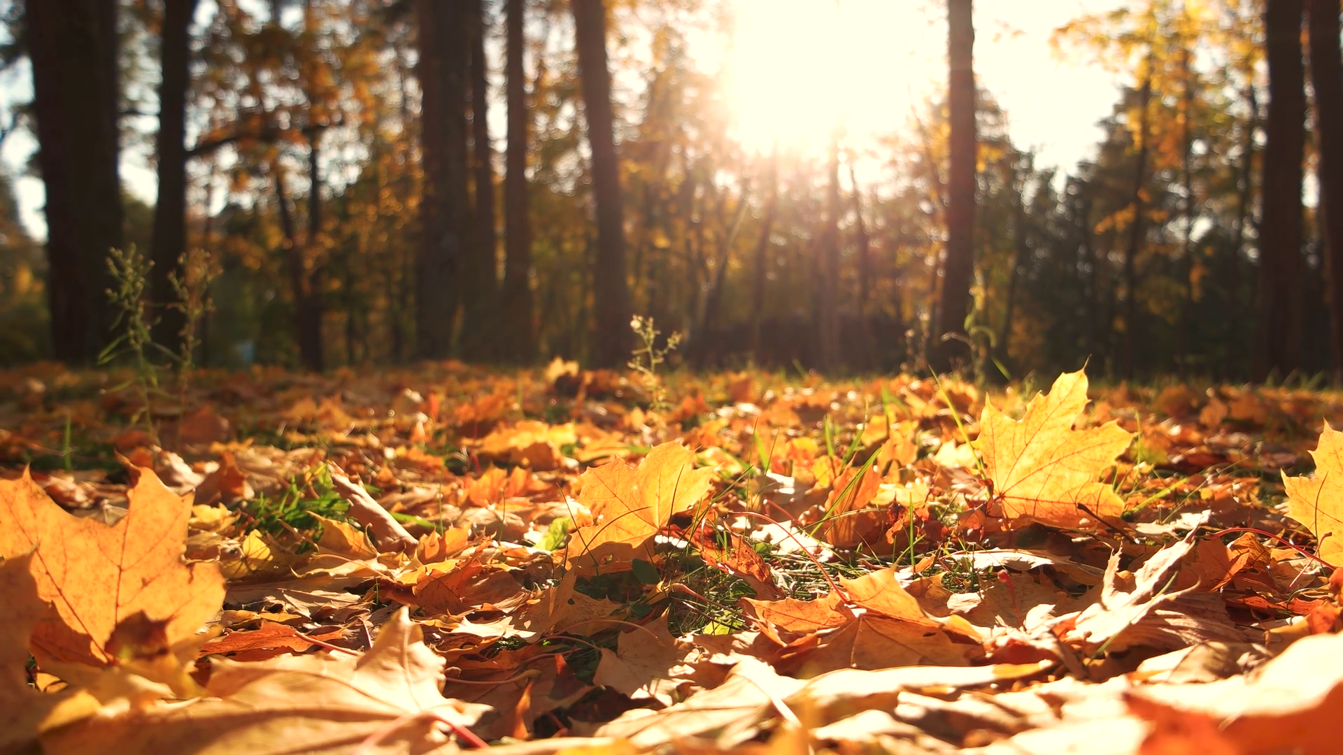Yellow Leaves On Ground In Fall Park Carpet Of Autumn Leaves On The Grass Warm Autumn Sunny ParkÂ