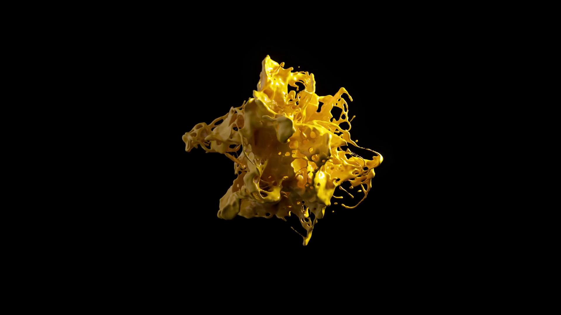 Yellow Liquid Splash In 3d Animation Capturing A Dynamic Freeform Burst With Glistening Reflections On A Black Backdrop