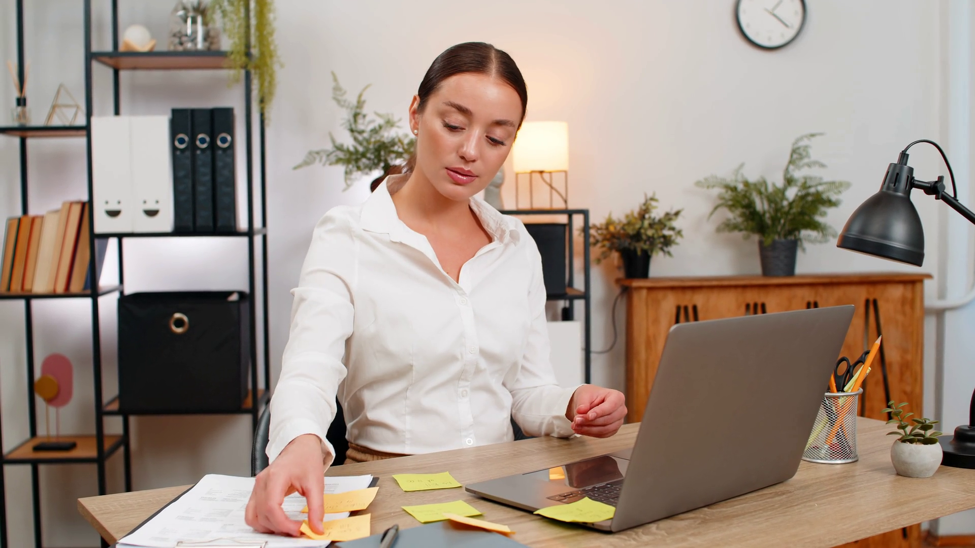 Young Businesswoman Opens Laptop Lays Stickers And Starts First Task From List With Confident FocusÂ