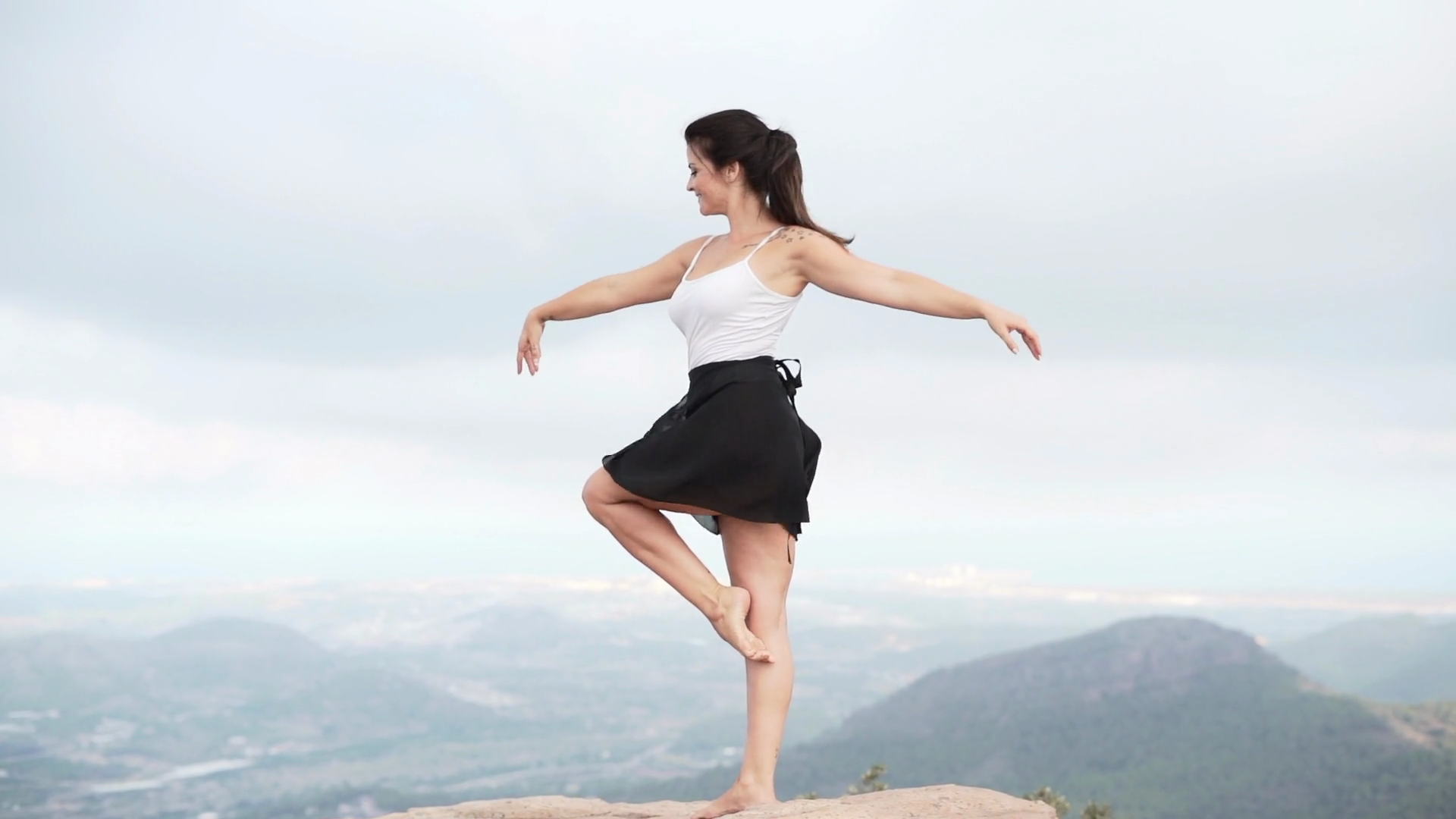 Young Girl Having Training Session Of Yoga At The Mountains