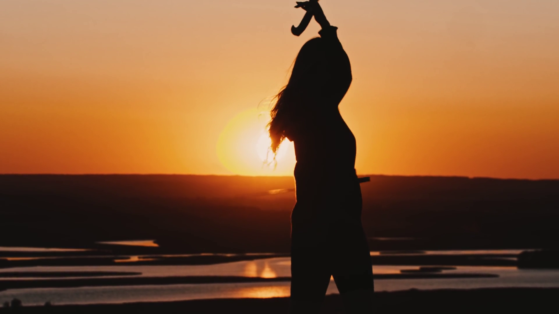Woman In A Hoodie Swinging With Two Swords Outdoors At SunsetÂ