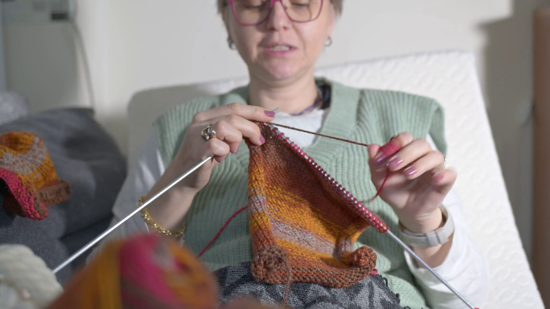 Young Woman Knits With Vibrant Yarn And Needles 5Â