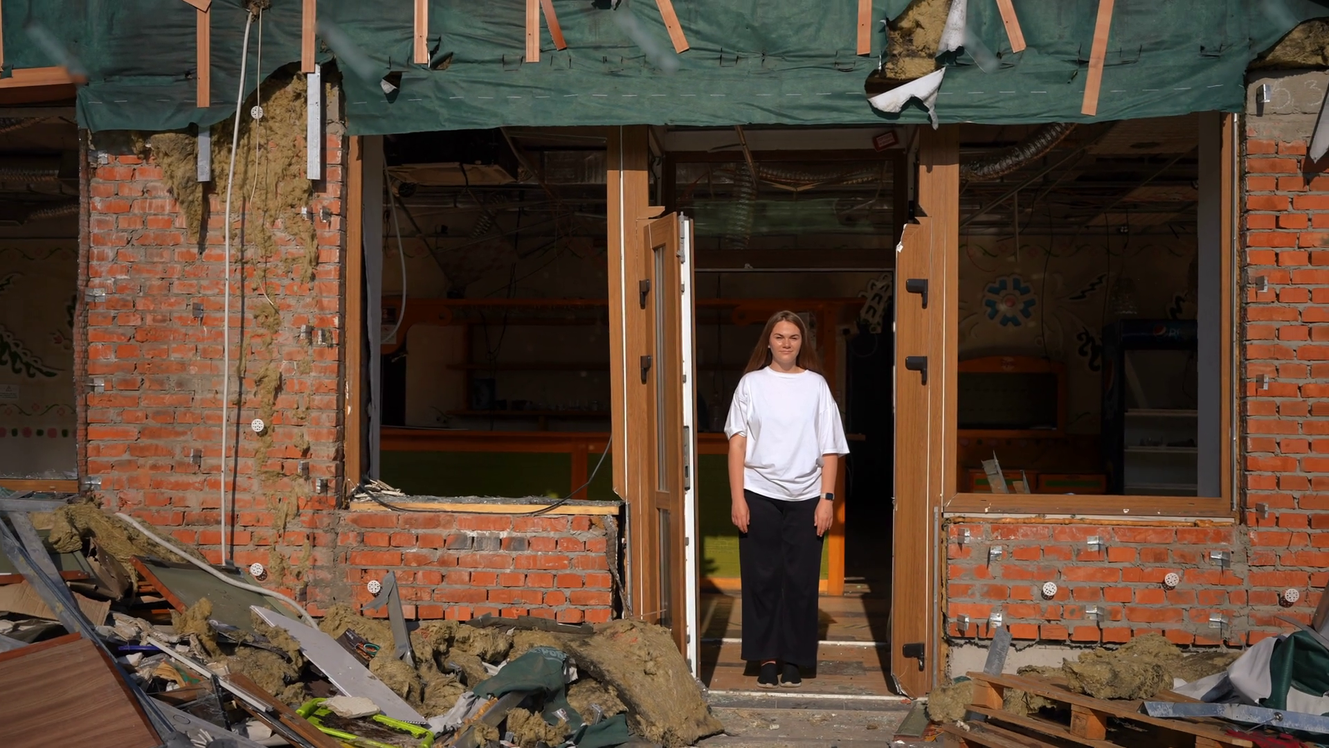 Woman At Ruined Building In Ukraine War Consequences And DestructionÂ