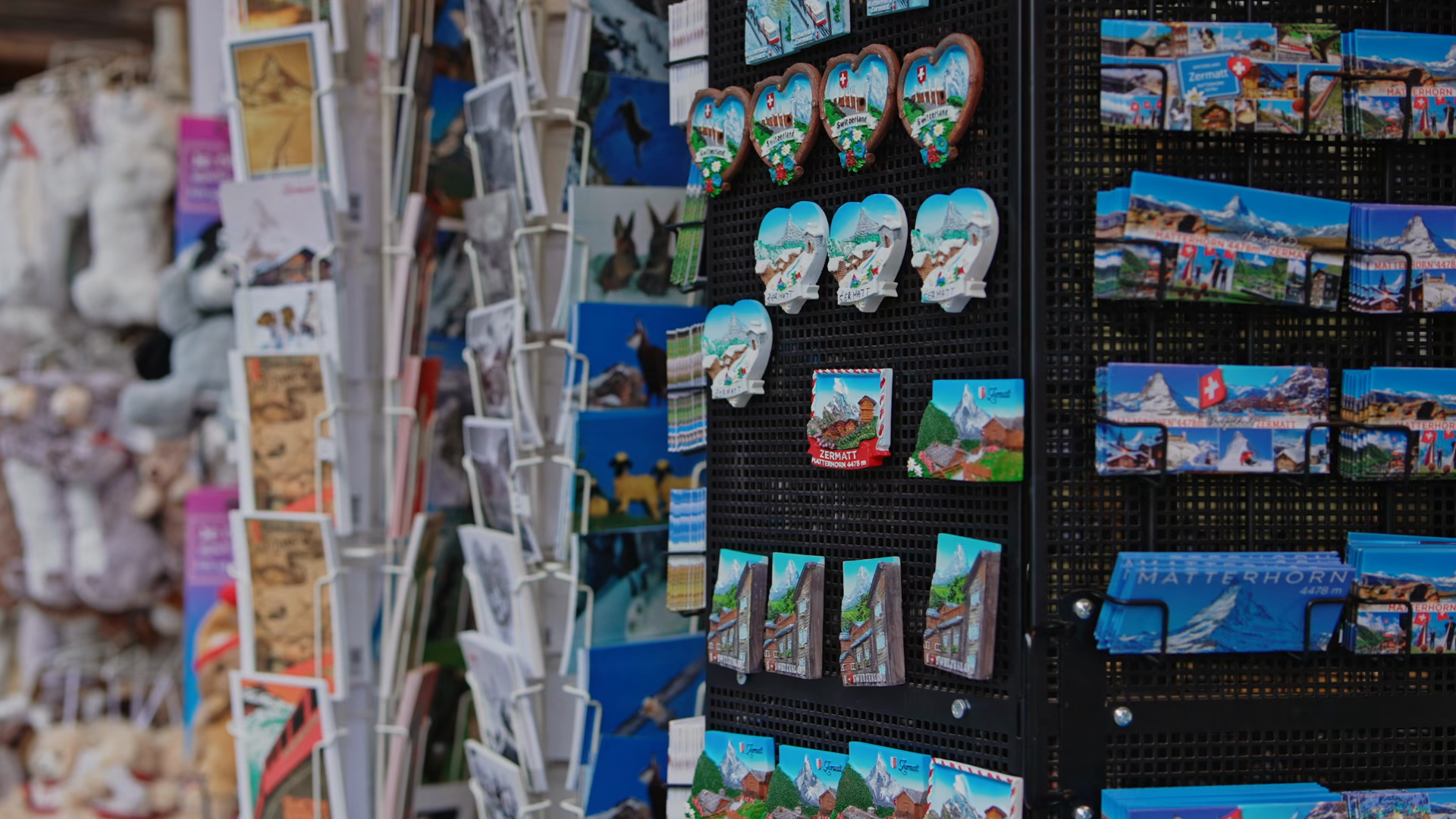 Zermatt Souvenir Stand With Postcards And Magnetsfilmed On June 122025editorial FootageÂ