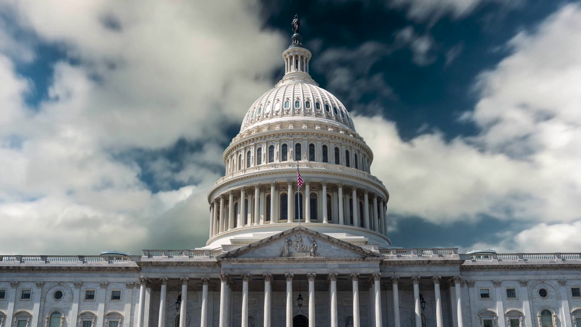 Zoom In Time Lapse Cinemagraph Of The Us Capitol With The Clouds Moving Away From The CameraÂ